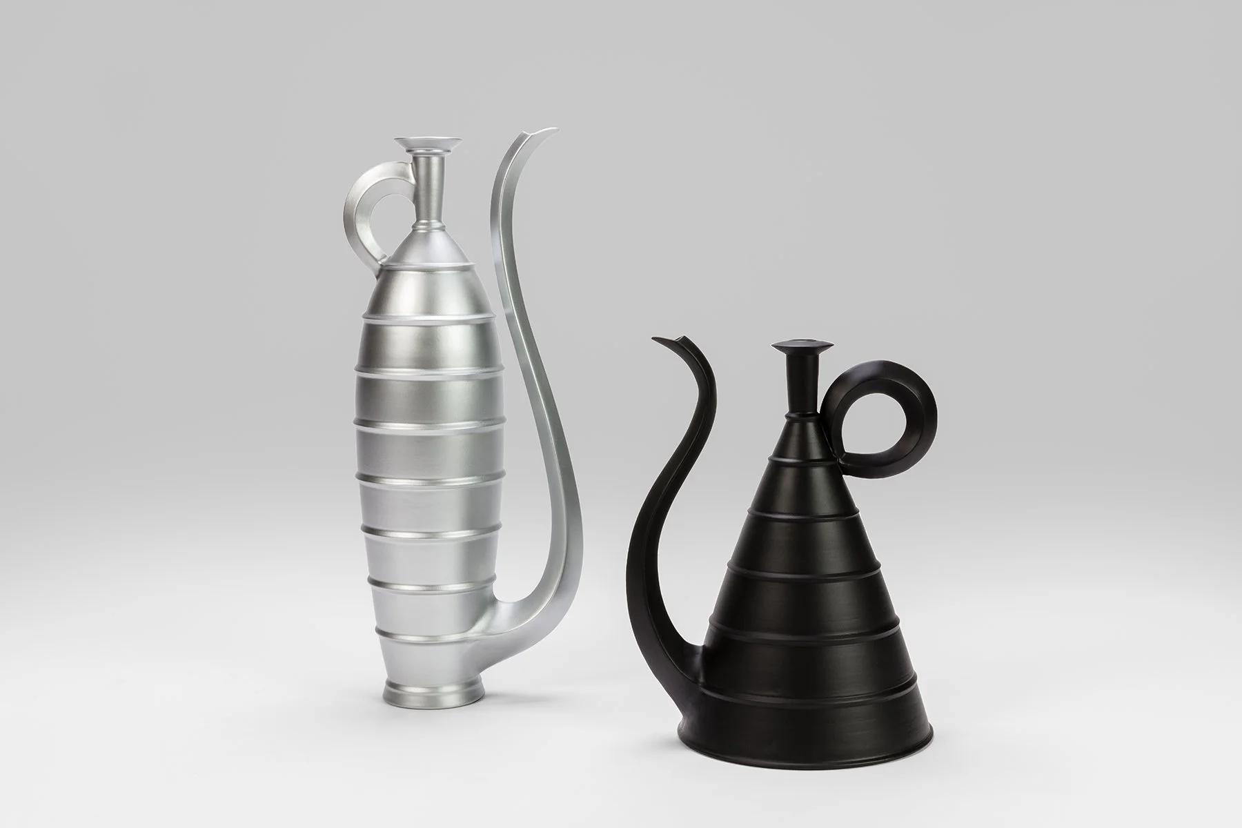 Oil Cans Stoneware, Metallic Glaze - left 19.5 x 7.75 x 5.25 / right 13 x 10.5 x 8.251990 View fullsize View fullsize